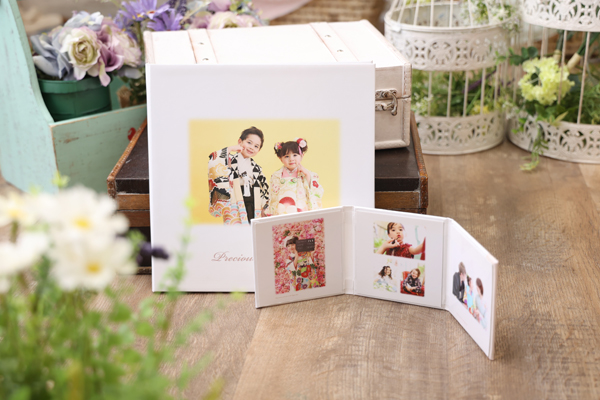 化粧箱のついた高級感溢れる三面台紙です。ミニブックもオプションで選べます。
